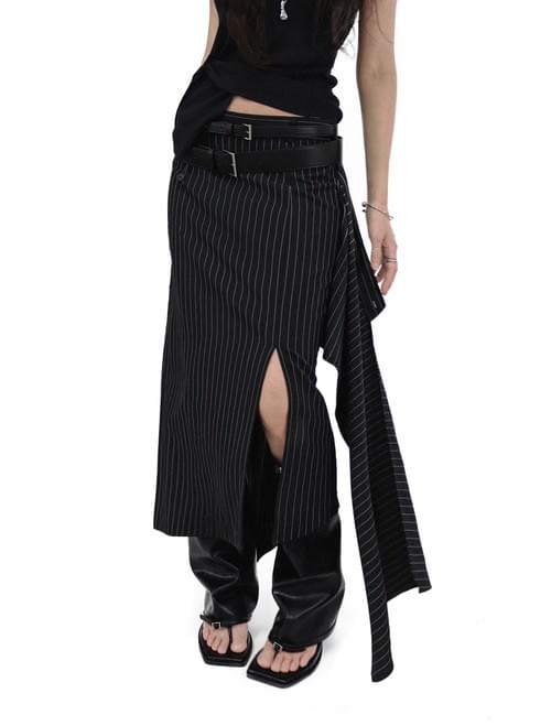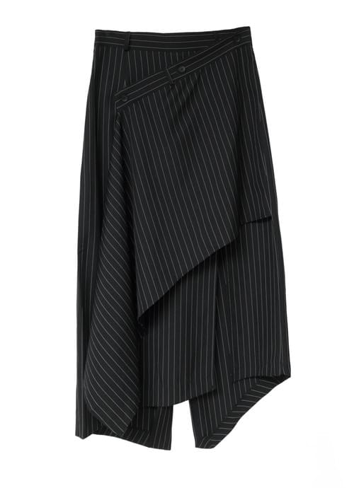 KALO UNBALANCED DRAPE BUTTON SLIT WRAP SKIRT(3 COLORS)