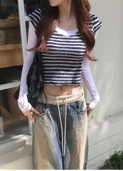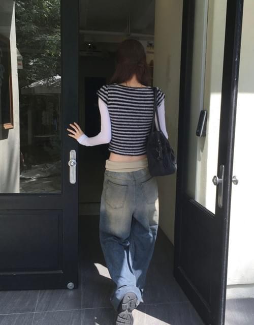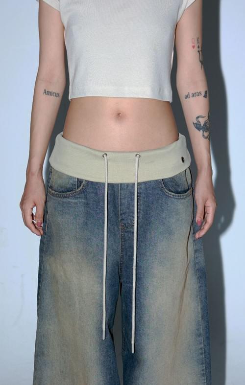 OOTJ Vintage Faded Elastic Waist Denim Pants